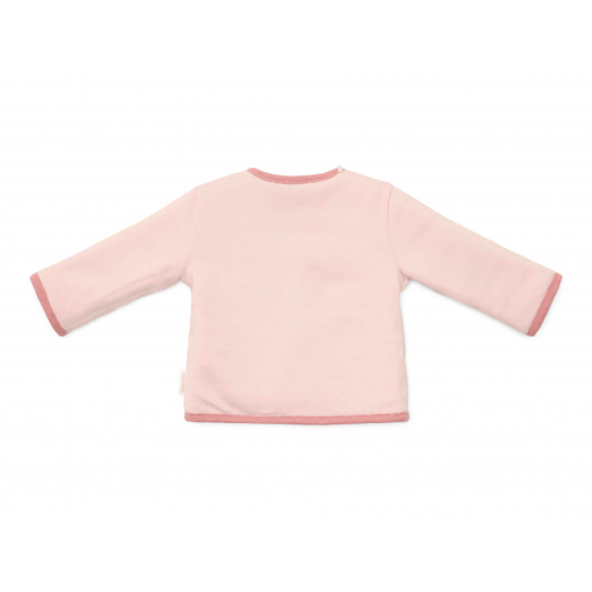 Stylový oboustranný kabátek z měkké organické bavlny poskytne vašemu dítěti díky dvojité vrstvě teplo a pohodlí. Oboustranné provedení nabízí dvě barevné varianty nošení - světle růžovou s výšivkou kytičky a tmavě růžovou s pleteným jemným vzorem. Kabátek se snadno obléká díky zapínání na patentky. Kabátek je součástí designové kolekce oblečení, hraček a doplňků Little Dutch Fairy Garden, inspirované životem na zahradě. Složení: 100% organická bavlna Možno prát v pračce na jemný cyklus do 30° C, nesušte v sušičce.
