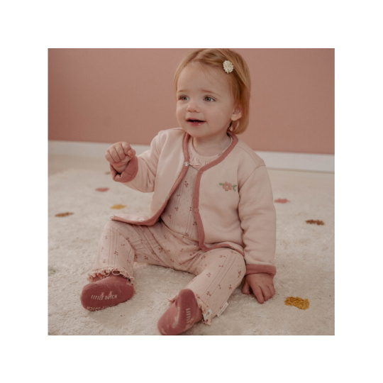 Stylový oboustranný kabátek z měkké organické bavlny poskytne vašemu dítěti díky dvojité vrstvě teplo a pohodlí. Oboustranné provedení nabízí dvě barevné varianty nošení - světle růžovou s výšivkou kytičky a tmavě růžovou s pleteným jemným vzorem. Kabátek se snadno obléká díky zapínání na patentky. Kabátek je součástí designové kolekce oblečení, hraček a doplňků Little Dutch Fairy Garden, inspirované životem na zahradě. Složení: 100% organická bavlna Možno prát v pračce na jemný cyklus do 30° C, nesušte v sušičce.