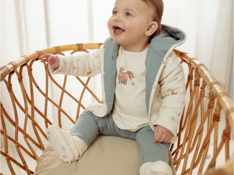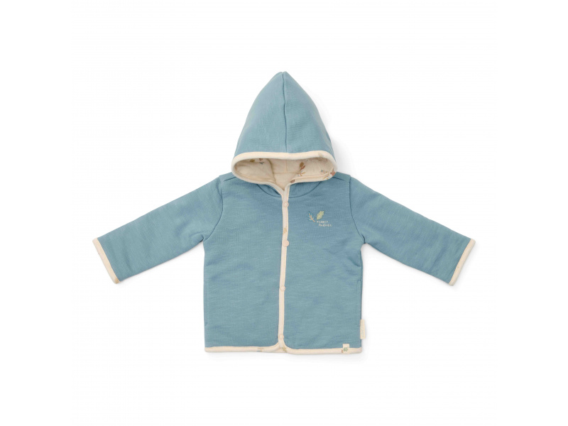 Stylový oboustranný kabátek z měkké organické bavlny poskytne vašemu dítěti díky dvojité vrstvě teplo a pohodlí. Oboustranné provedení nabízí dvě barevné varianty nošení - modrou s výšivkou a krémovou s potiskem. Kabátek se snadno obléká díky zapínání na patentky. Kabátek je součástí designové kolekce oblečení, hraček a doplňků Little Dutch Forest Friends, inspirované životem v lese. Složení: 100% organická bavlna Možno prát v pračce na jemný cyklus do 30° C, nesušte v sušičce.