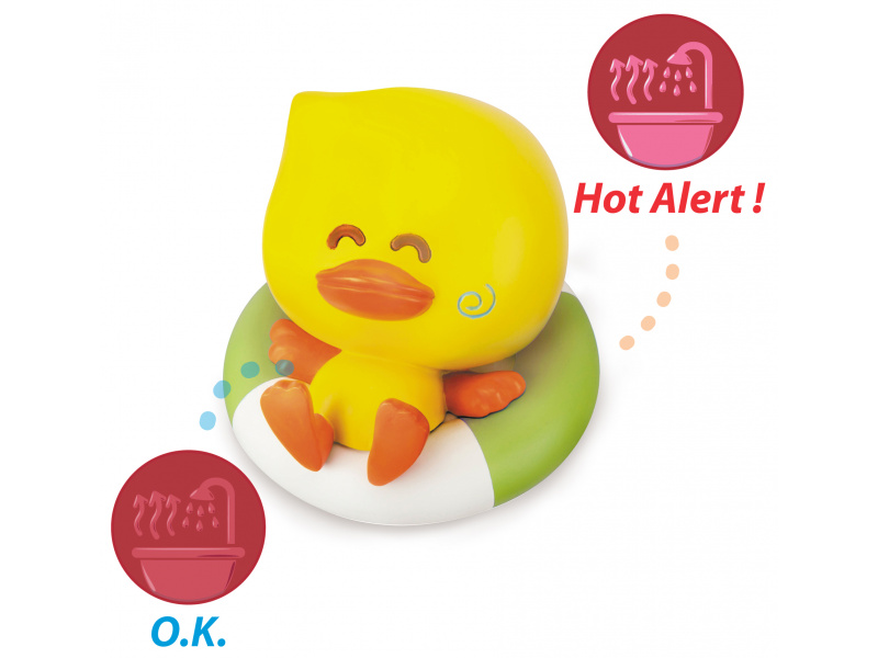Roztomilá hračka do koupele v podobě kačenky je vybavena tepelným senzorem pro snadnou a rychlou kontrolu teploty vody ve vaně. Po vložení do příliš teplé vody se objeví kontrastní symbol na spodní části hračky, který vás upozorní, že teplota vody není optimální pro vložení dítěte. Vhodné pro děti od narození.