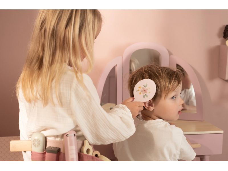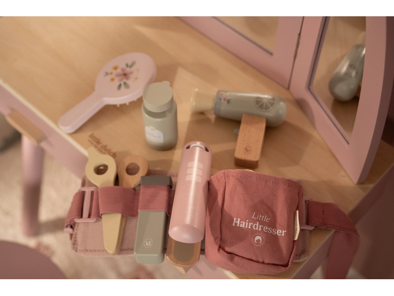 Stříhání, foukání a vytváření účesů jako u opravdového kadeřníka, to vše přináší dětem tato kouzelná dřevěná sada Little Dutch. Najdou v ní vše, co potřebují k otevření vlastního salonu krásy pro panenky, sourozence i kamarády. Kdo bude první zákazník? Kompletní sada příslušenství - obsahuje nůžky, fén, žehličku, strojek, kartáč, šampon, lak na vlasy a zrcátko Nastavitelný růžový opasek - umožňuje mít všechny pomůcky po ruce jako pravý profesionál Bezpečné a kvalitní zpracování - vyrobeno z dřeva s hladkým povrchem a zaoblenými hranami pro bezpečnou hru Podpora rozvoje dovedností - rozvíjí jemnou motoriku, představivost a sociální schopnosti při hraní rolí Okouzlující design - jemné odstíny růžové a přírodní dřevo zaručí, že sada zapadne do každého dětského pokoje Nekonečná zábava - děti mohou neustále vymýšlet nové účesy a příběhy Hračka je součástí kolekce vysoce kvalitních dřevěných hraček Little Dutch, navržených s důrazem na bezpečnost a originální design. Vyrobeno z odolného FSC certifikovaného dřeva. Rozměry balení: 27 × 8 × 17 cm Vhodné pro děti od 3 let.