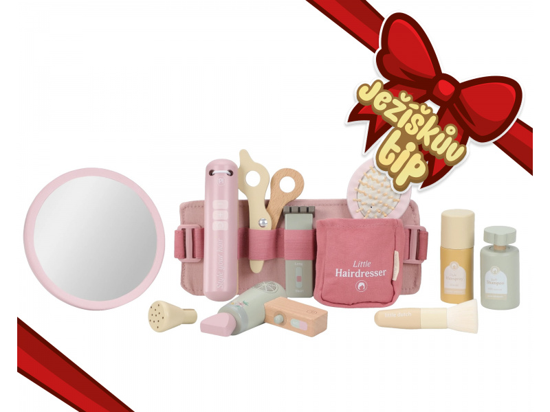 Stříhání, foukání a vytváření účesů jako u opravdového kadeřníka, to vše přináší dětem tato kouzelná dřevěná sada Little Dutch. Najdou v ní vše, co potřebují k otevření vlastního salonu krásy pro panenky, sourozence i kamarády. Kdo bude první zákazník? Kompletní sada příslušenství - obsahuje nůžky, fén, žehličku, strojek, kartáč, šampon, lak na vlasy a zrcátko Nastavitelný růžový opasek - umožňuje mít všechny pomůcky po ruce jako pravý profesionál Bezpečné a kvalitní zpracování - vyrobeno z dřeva s hladkým povrchem a zaoblenými hranami pro bezpečnou hru Podpora rozvoje dovedností - rozvíjí jemnou motoriku, představivost a sociální schopnosti při hraní rolí Okouzlující design - jemné odstíny růžové a přírodní dřevo zaručí, že sada zapadne do každého dětského pokoje Nekonečná zábava - děti mohou neustále vymýšlet nové účesy a příběhy Hračka je součástí kolekce vysoce kvalitních dřevěných hraček Little Dutch, navržených s důrazem na bezpečnost a originální design. Vyrobeno z odolného FSC certifikovaného dřeva. Rozměry balení: 27 × 8 × 17 cm Vhodné pro děti od 3 let.