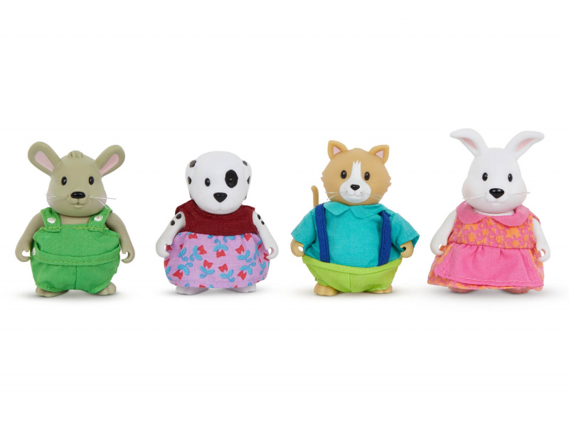 Skupinu kamarádů ze dvora tvoří pes Ruby, kočka Wally, králík Star a myš Nibbles. Postavičky jsou součástí kolekce postaviček zvířátek Li'l Woodzeez Friendz Club. Postavičky zvířátek Li'l Woodzeez jsou vyrobené z měkkého příjemného materiálu a mají pohyblivé ruce, nohy i hlavy pro zábavnou předstíranou hru. Každá postavička má na sobě krásné barevné oblečení. Sada obsahuje 4 postavičky zvířátek. Další postavičky zvířátek, domečky, obchody, dopravní prostředky apod. se prodávají samostatně. Všechny postavičky a doplňky Li'l Woodzeez jsou navzájem kompatabilní a umožní vám vytvořit originální městečko pro nekonečnou hru rozvíjející fantazii a kreativitu vašeho dítěte. Vhodné pro děti od 3 let.
