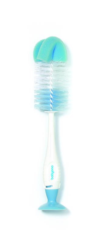 BABYONO Kartáč na čištění lahví a dudlíků 2v1 s přísavkou modrá