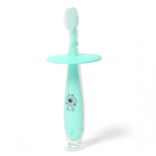 Jemný silikonový zubní kartáček se zarážkou, která zabraňuje tomu, aby si dítě vložilo kartáček příliš hluboko do úst. Kartáček je určen pro denní ústní hygienu. Díky veselému designu bude čištění zoubků zábavné. Ideální i pro učení dětí čistit si zoubky samy. Vlastnosti: - opatrně čistí zoubky - bezpečnostní zarážka brání tomu, aby si dítě vložilo kartáček příliš hluboko do úst - přísavka umožňuje hygienické upevnění zubního kartáčku na umyvadlo - vyrobeno z odolných materiálů - neobsahuje bisfenol A - vhodné pro děti od 12m+ Rozměry produktu: 4,5 cm x 11,5 cm Odstraňte všechny bezpečnostní prvky, které by mohly být nebezpečné pro dítě. Výrobek by měl být zkontrolován před každým použitím. Při prvních známkách poškození nebo opotřebení jej zlikvidujte. Vždy používejte pod dohledem dospělé osoby. Výrobek není hračka. Doporučujeme uchovat obal pro informaci. Obal uchovávejte na místě nepřístupném dětem. Před prvním použitím opláchněte výrobek horkou vodou (nevařte!) a osušte. Adresa dodavatele: Babyono sp. z o.o., Kowalewicka 13, 60-002 Poznań, Poland. +48 61 83 90 520, info@babyono.pl, www.babyono.com