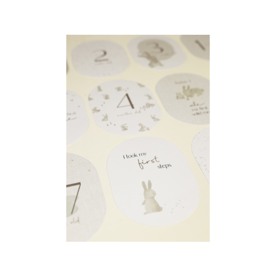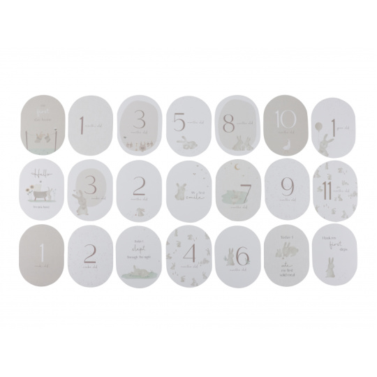 Sada originálních 21 karet s krásnými ilustracemi vám pomůže zachytit vzácné vzpomínky na jednotlivé milníky v životě vašeho miminka od narození, od prvního úsměvu až po první krůčky. Každý okamžik je vzácný, každý milník je jedinečný a při využití těchto karet na fotografiích vždy poznáte, který z těchto oakmžiků fotografie zachytila. Karty jsou dodávány v kvalitní dárkové krabičce a jsou tak ideální i jako dárek pro novorozené miminko. Sada je součástí designové kolekce hraček a doplňků Little Dutch Baby Bunny. Vhodné od narození.