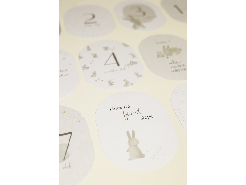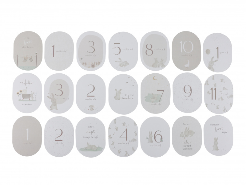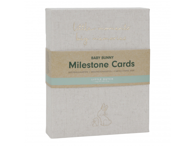 Sada originálních 21 karet s krásnými ilustracemi vám pomůže zachytit vzácné vzpomínky na jednotlivé milníky v životě vašeho miminka od narození, od prvního úsměvu až po první krůčky. Každý okamžik je vzácný, každý milník je jedinečný a při využití těchto karet na fotografiích vždy poznáte, který z těchto oakmžiků fotografie zachytila. Karty jsou dodávány v kvalitní dárkové krabičce a jsou tak ideální i jako dárek pro novorozené miminko. Sada je součástí designové kolekce hraček a doplňků Little Dutch Baby Bunny. Vhodné od narození.