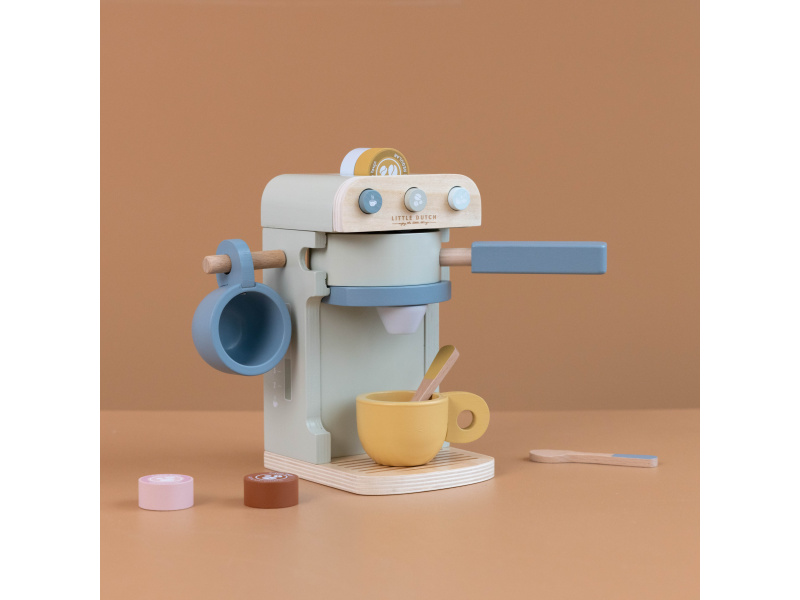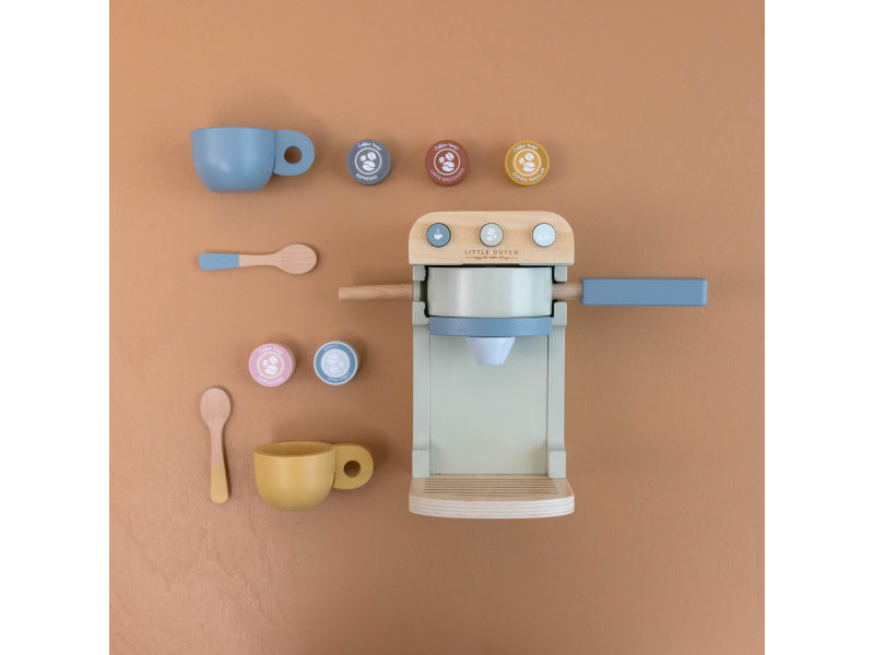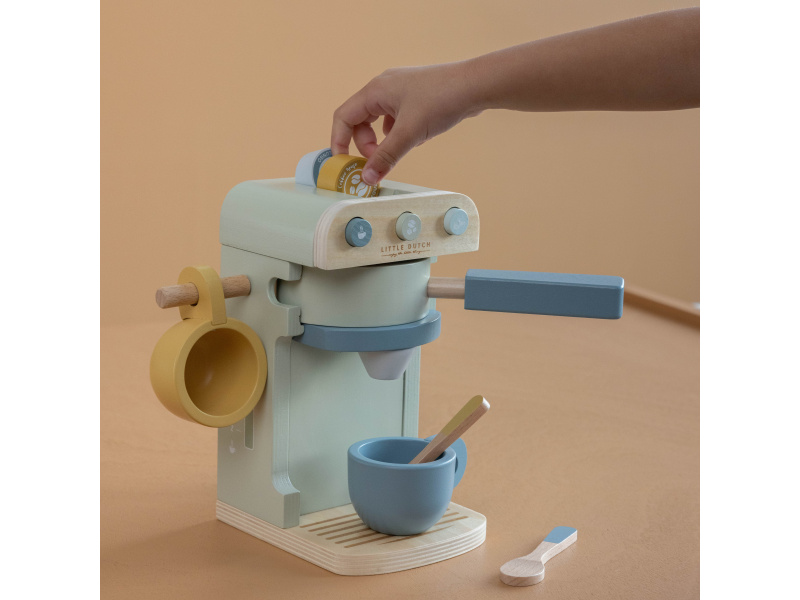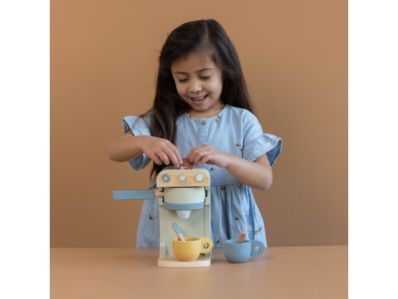 Kávovar na kapsle v krásném dřevěném provedení nesmí chybět v žádné dětské kuchyňce. Nechte se pozvat na výborné capuccino nebo espresso! Balení obsahuje kávovar, dva hrníčky se lžičkami, pět kapslí na přípravu různých druhů kávy - lungo, cappuccino, latte macchiato, coffee a espresso. Rozměry: 13 x 23 x 23 cm Vhodné pro děti od 3 let.
