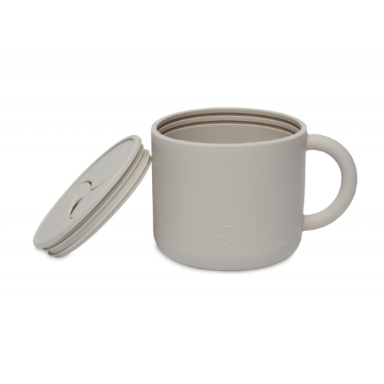 Praktický kelímek s otvory ve víčku, kterými si vaše dítě na cestách i doma snadno vyndá sušenky či kousky ovoce či zeleniny. Měkký silikonový materiál umožňuje snadný přístup k obsahu kelímku a zároveň je obsah chráněný před vysypáním. Ucho kelímku usnadňuje dítěti jeho držení. Po sundání víčka lze kelímek používat i jako hrnek na pití či na krmení příkrmy, kaší apod. Silikonový materiál je odolný vysokým i nízkým teplotám a není náchylný k vytváření skvrn od barevných potravin. Rozměry: průměr 8 cm, výška 7 cm Vhodné do myčky, mikrovlnné trouby i mrazáku. Neobsahuje BPA.