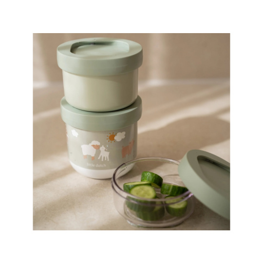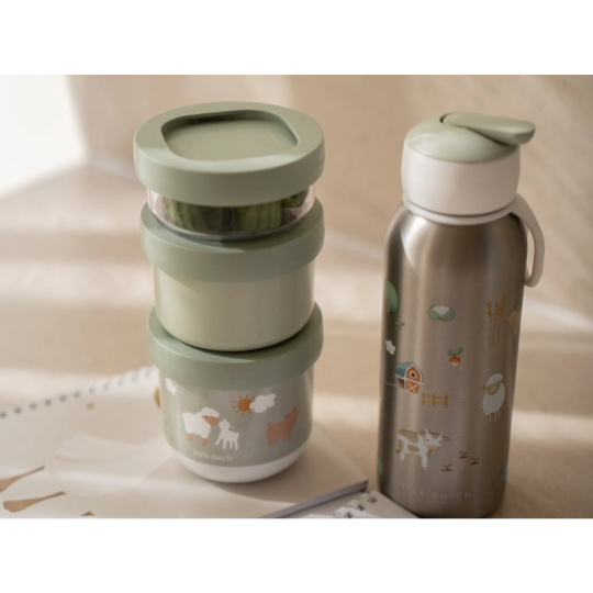 Tři praktické stohovatelné kelímky s víčky jsou ideální pro oddělené uložení jednotlivých částí dětské svačinky. Spolehlivé těsnicí víčko chrání obsah před vysypáním. Pro snadné přenášení se tři kelímky pevně zacvaknou k sobě. Kelímky využijete na procházkách, výletech i doma. Kelímky jsou součástí designové kolekce hraček a doplňků pro děti Little Dutch Farma. Materiál: PP, TPE, PETG Objem: 275 ml, 175 ml, 100 ml Rozměry celkové: Ø 8,6 x 17,9 cm Vhodné do myčky i mikrovlnné trouby (bez víčka).