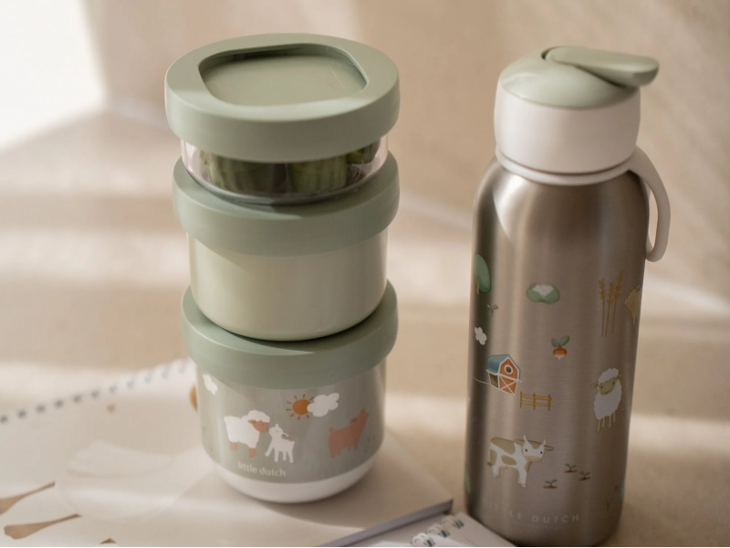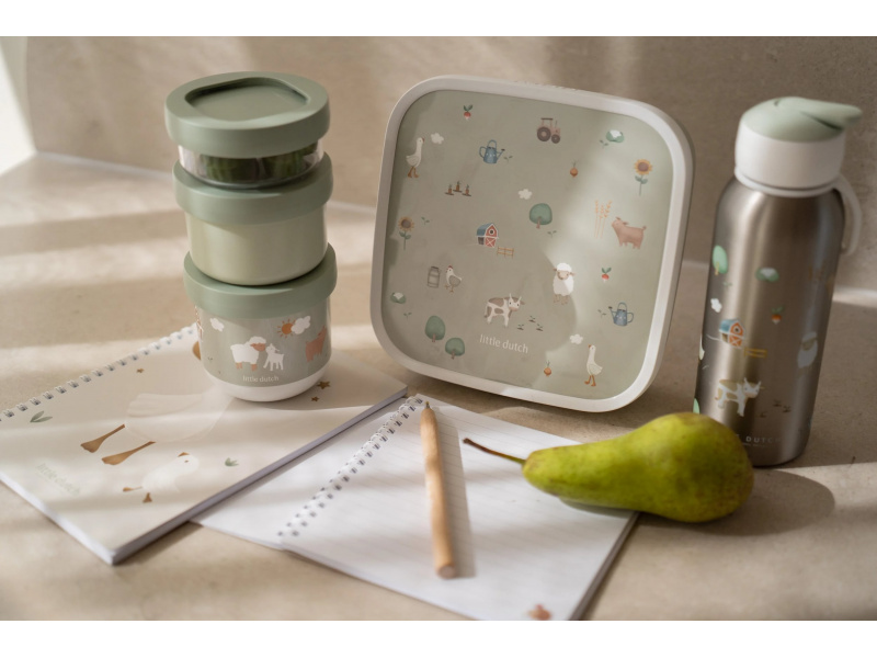 Tři praktické stohovatelné kelímky s víčky jsou ideální pro oddělené uložení jednotlivých částí dětské svačinky. Spolehlivé těsnicí víčko chrání obsah před vysypáním. Pro snadné přenášení se tři kelímky pevně zacvaknou k sobě. Kelímky využijete na procházkách, výletech i doma. Kelímky jsou součástí designové kolekce hraček a doplňků pro děti Little Dutch Farma. Materiál: PP, TPE, PETG Objem: 275 ml, 175 ml, 100 ml Rozměry celkové: Ø 8,6 x 17,9 cm Vhodné do myčky i mikrovlnné trouby (bez víčka).