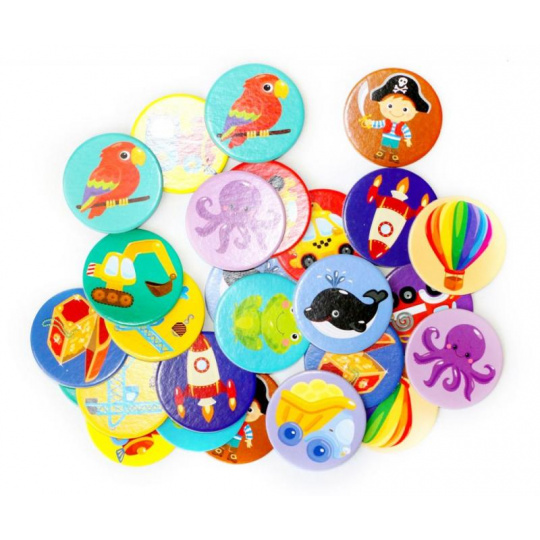 Líbit se vám budou žetony s barevnými obrázky a různými obrázky.