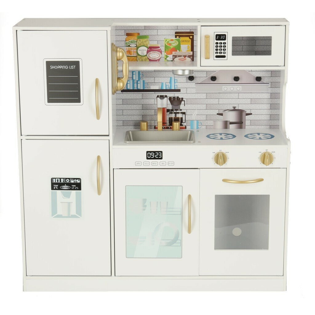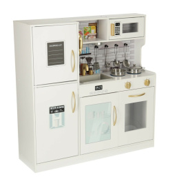- Kuchyně je bílá a má zlaté prvky, díky nimž celý produkt dokonale zapadne do každé místnosti a poskytne nejen hrací plochu, ale také velkolepou dekoraci.