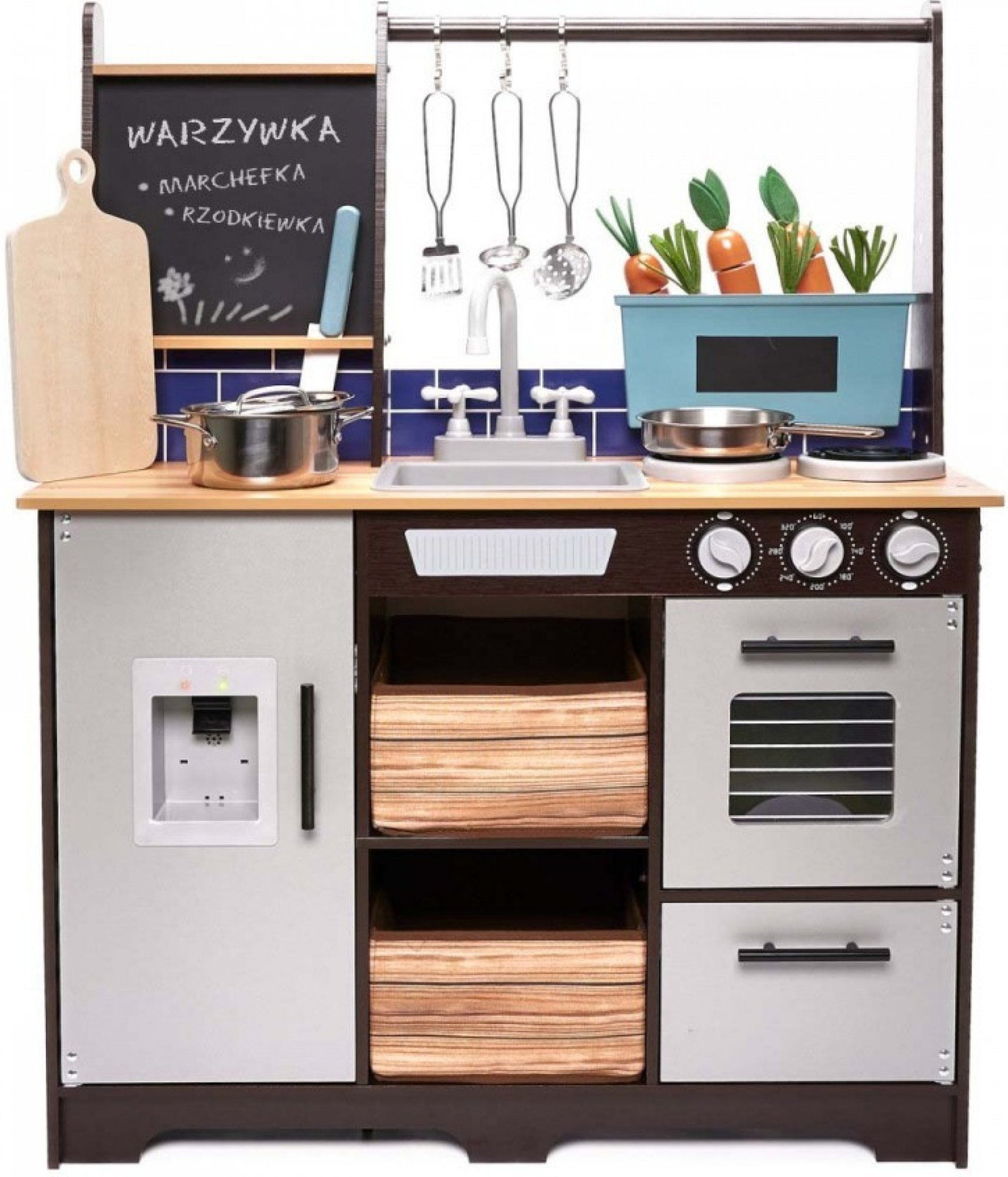 Dítě se naučí základní činnosti vaření, podávání jídel a udržování pořádku na pracovišti. Dřevěná kuchyňka vám umožní vysvětlit vašemu dítěti nebezpečí hořáků a provozu trouby bez rizika popálení.