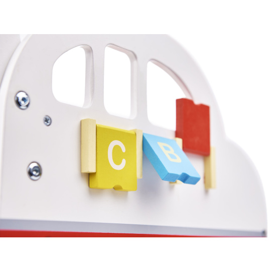 Design a výroba hračky potěší náročné rodiče i děti. Má dřevěné prvky a výřezy imitující boční okna nebo světla auta.