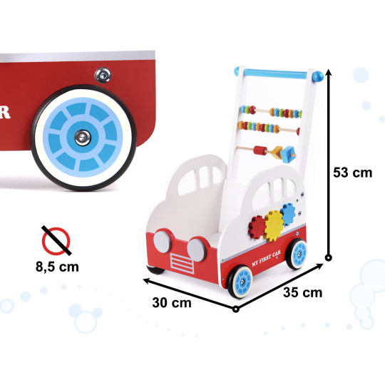 Chodítko, které vašemu batoleti usnadní první krůčky. Dobře poslouží i v pozdějším věku jako vozík na vaše oblíbené hračky a první počítadlo.