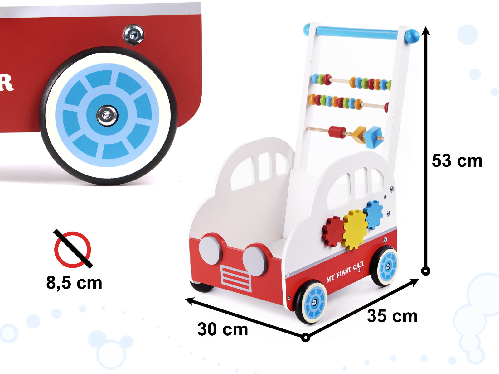 Chodítko, které vašemu batoleti usnadní první krůčky. Dobře poslouží i v pozdějším věku jako vozík na vaše oblíbené hračky a první počítadlo.