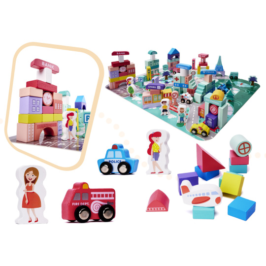 Kik městské vzdělávací dřevěné kostky 128 dílů