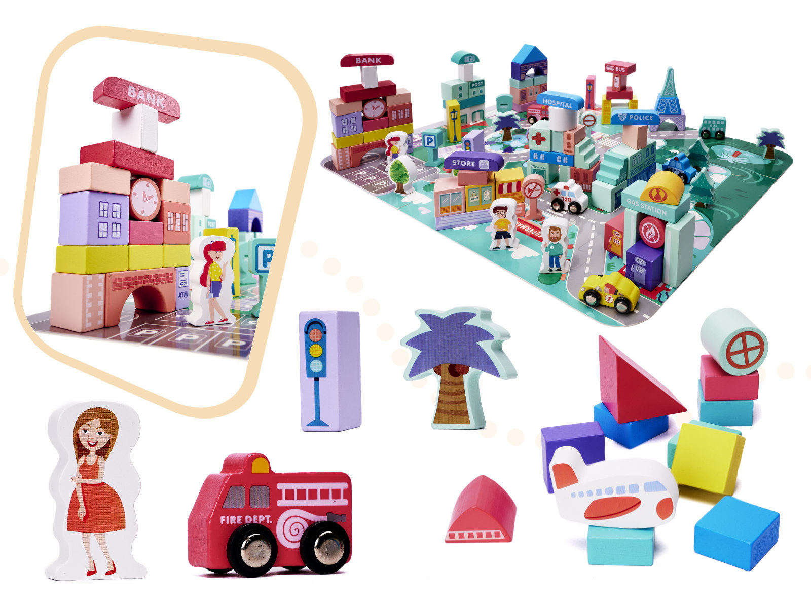 Kik městské vzdělávací dřevěné kostky 128 dílů