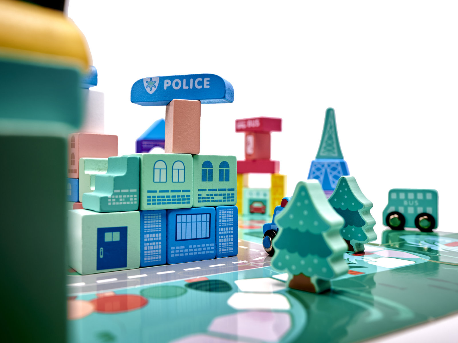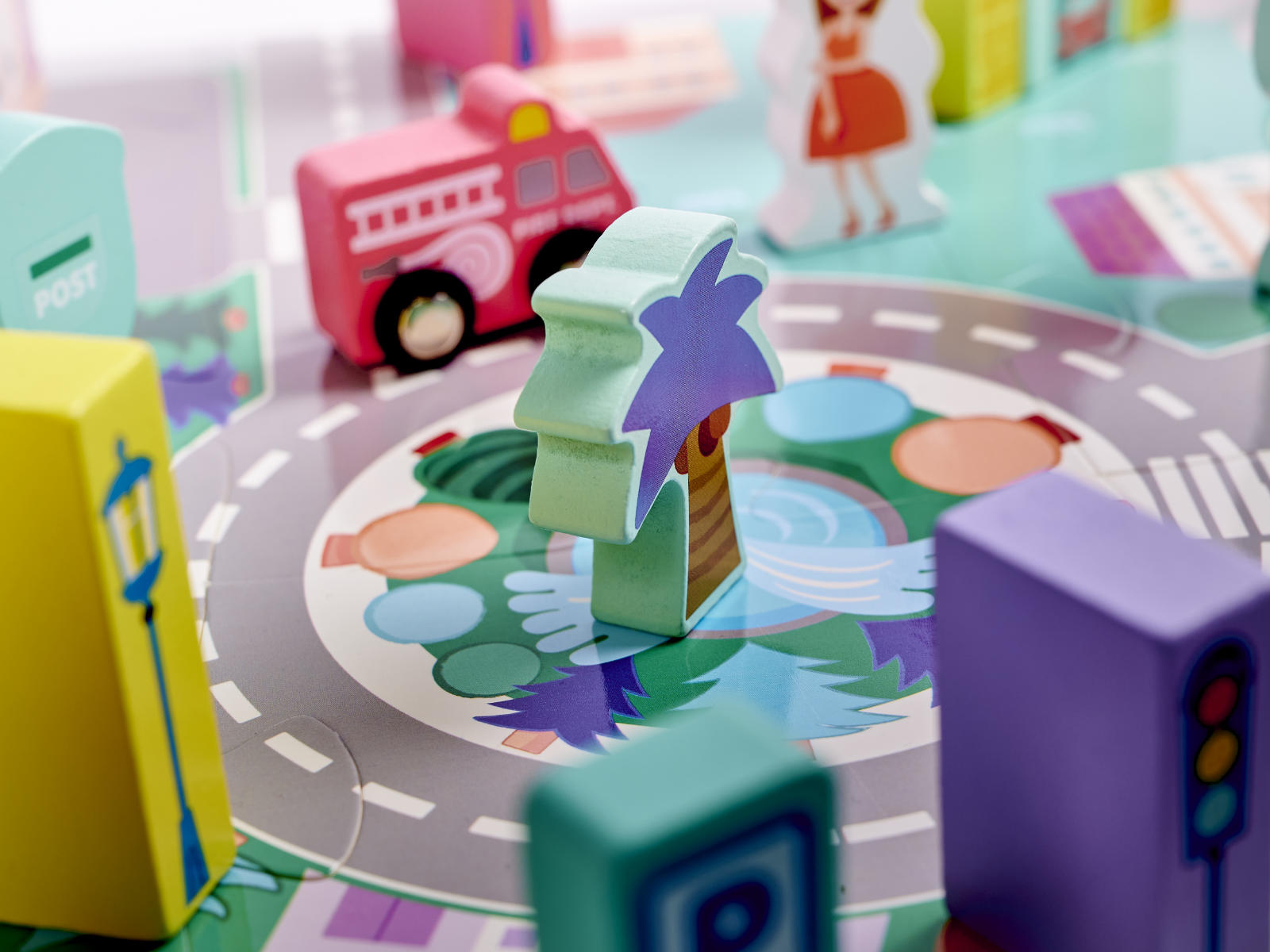 Ve městě nemůže chybět to nejdůležitější - ulice a auta . Sada obsahuje puzzle, které po sestavení vytvoří desku s pruhem ulic. Budou dokonalým doplňkem celku.