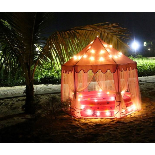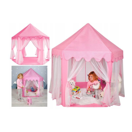 V krásném, přepychovém, růžovém stanu se bude každá holčička cítit jako opravdová majitelka zámku.