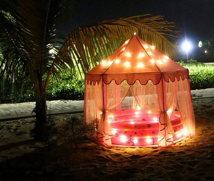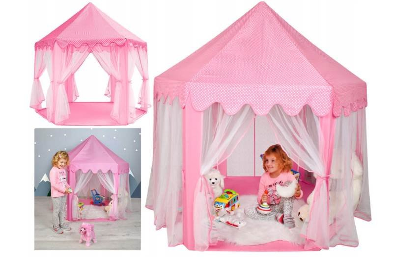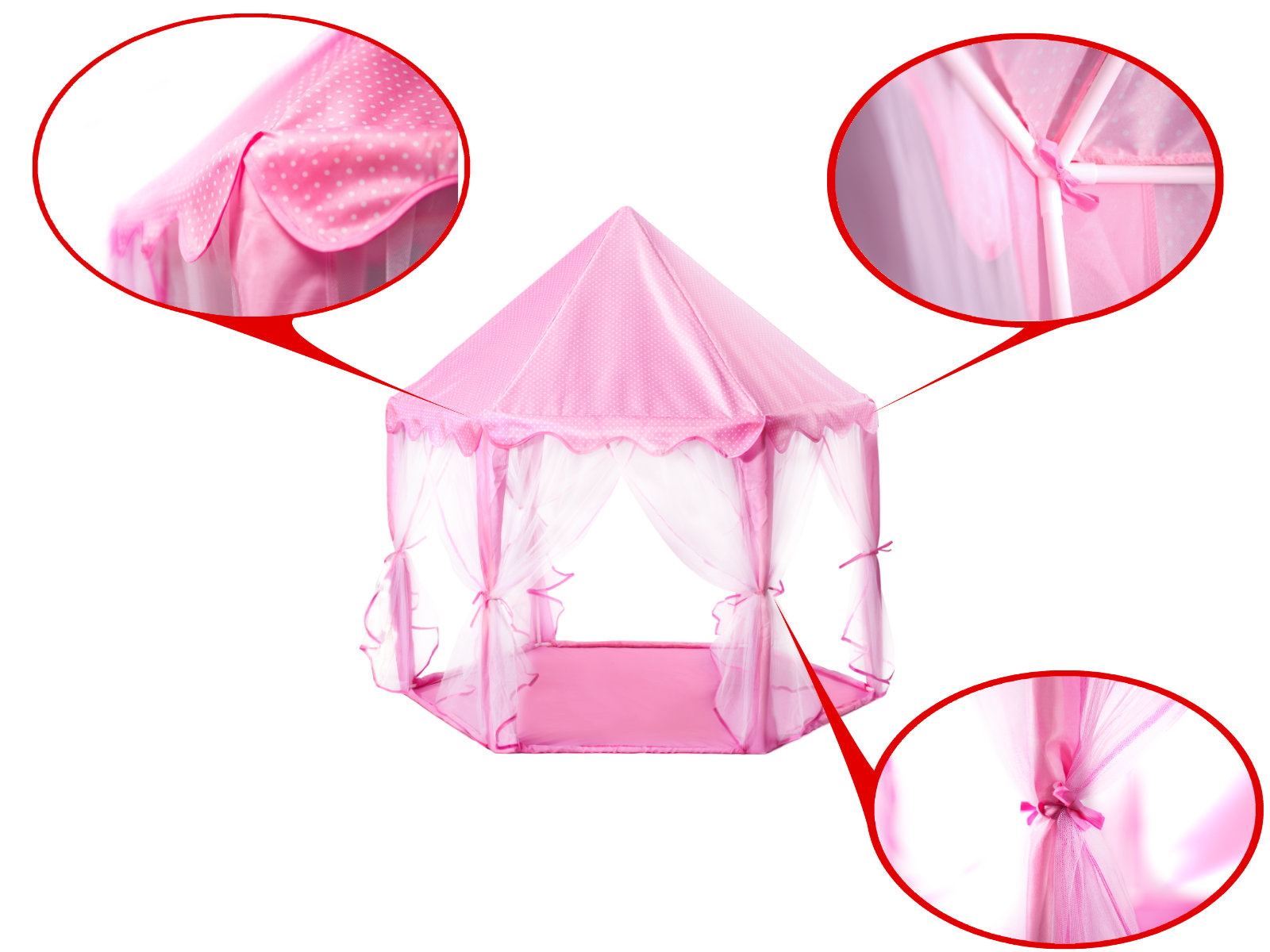 V krásném, přepychovém, růžovém stanu se bude každá holčička cítit jako opravdová majitelka zámku.