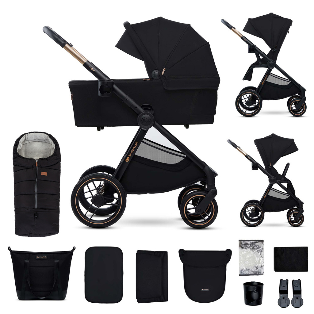 KINDERKRAFT Kočárek kombinovaný Nea 2 2v1 Midnigth Black + Fusak3v1 Jibot Horizontal Ink Black