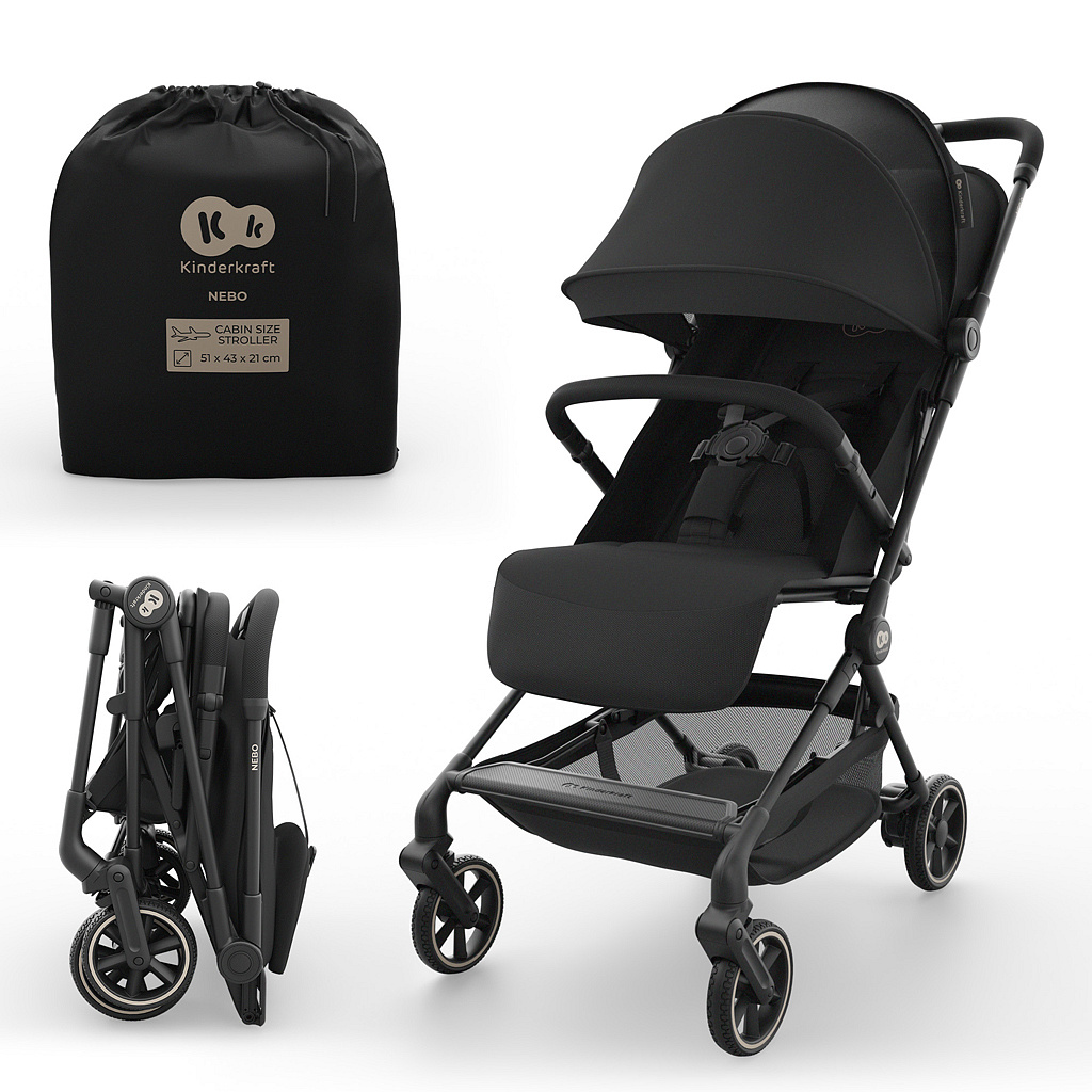 Kinderkraft NEBO je kompaktní sportovní kočárek typu cabin, vytvořený pro cestující rodiny, které rády sbírají společné zážitky a potřebují maximální mobilitu bez kompromisů v oblasti pohodlí a bezpečnosti. Díky lehké konstrukci a promyšleným řešením je NEBO ideální na letiště, do letadla i pro každodenní procházky městem. Mechanismus skládání jednou rukou umožňuje rychlé složení kočárku i v dynamických situacích. Po složení kočárek samostatně stojí a jeho rozměry (51 × 43 × 21 cm) odpovídají standardům příručního zavazadla, což výrazně zvyšuje komfort cestování. Nastavitelné opěradlo a opěrka nohou umožňují zcela ležící polohu, která dítěti zajišťuje pohodlný spánek. Pětibodové bezpečnostní pásy zajišťují stabilitu a ochranu dítěte a rodičům přinášejí klid. Klíčové vlastnosti a výhody: - Sportovní kočárek typu cabin – v souladu s rozměry příručního zavazadla - Skládání jednou rukou a samostatně stojící konstrukce - Ultralehká konstrukce - Ramenní popruh a transportní taška v balení - Nastavitelné opěradlo a opěrka nohou (ležící poloha) - Pětibodové bezpečnostní pásy - Košík pod sedadlem a kapsa u stříšky - Voděodolná stříška s UPF50+ Technické parametry: - Maximální zatížení: do 22 kg - Hmotnost výrobku: 5,9 kg - Čistá hmotnost: 5,7 kg - Rozměry po složení: 51 × 43 × 21 cm - Rám: hliník - Kola: EVA (přední 5”, zadní 6”) - Pásy: pětibodové - Příslušenství: transportní taška, ramenní popruh UPOZORNĚNÍ! Tento výrobek není vhodný pro běhání nebo jízdu na bruslích. Výrobek je určen pro děti do 22 kg nebo do 4 let, podle toho, co nastane dříve. Adresa dodavatele: Supl4kraft sp. z o.o. ul. Tatrzanska 1/5, 60–413 Poznan, Poland support@kinderkraft.com www.kinderkraft.com
