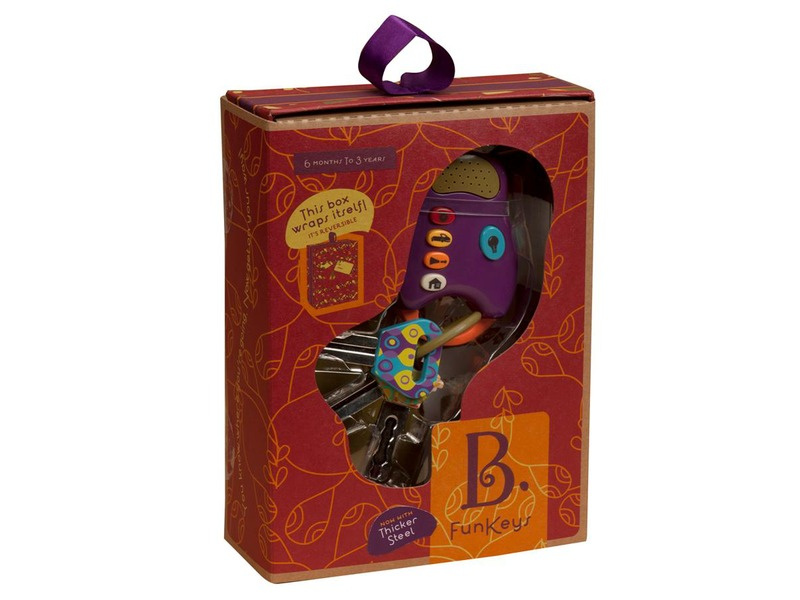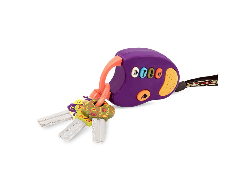 Klíče B.toys jako od opravdového auta se čtyřmi různými zvuky a světýlkem. Odolný materiál bezpečný pro zkoumání rukou i ústy. Baterie 2xAAA jsou součástí. Vhodné od 6 měsíců.
