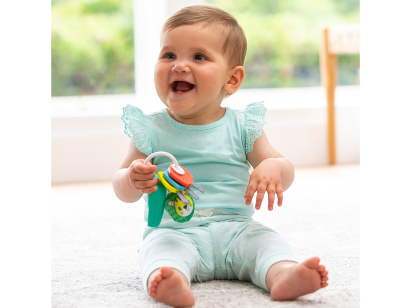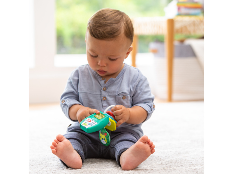 Barevné klíčky z příjemného materiálu s ovladačem, který po zmáčknutí svítí a hraje pět melodií a zvuků. Baterie 3xLR44 1,5V jsou součástí. Vhodné pro děti od 6 měsíců.