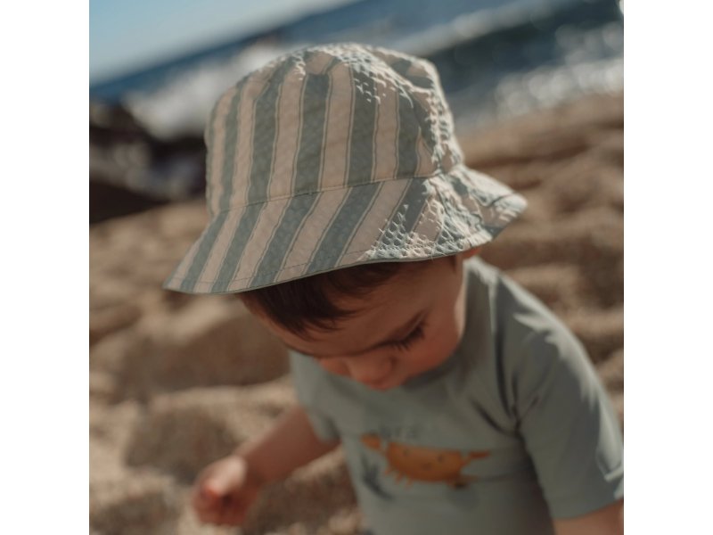 Oboustranný klobouček s krásným potiskem chrání vaše dítě před sluncem při koupání u moře i doma na zahradě. Ať už vaše děti milují skákání ve vlnách, koupání v bazénu nebo si rády staví hrady z písku, s touto čepičkou si mohou bezstarostně užívat celý den. Oboustranné provedení nabízí na výběr dva designy klouboučku - jednobarevný s potiskem a pruhovaný. Velikost 1 je určena pro děti od narození do cca 1 roku. Složení: 94% recyklovaný nylon, 6% spandex Při pobytu na slunci používejte pro dítě ochranné opalovací krémy. Možno prát v pračce na 30°C. Balení obsahuje 1 klobouček.