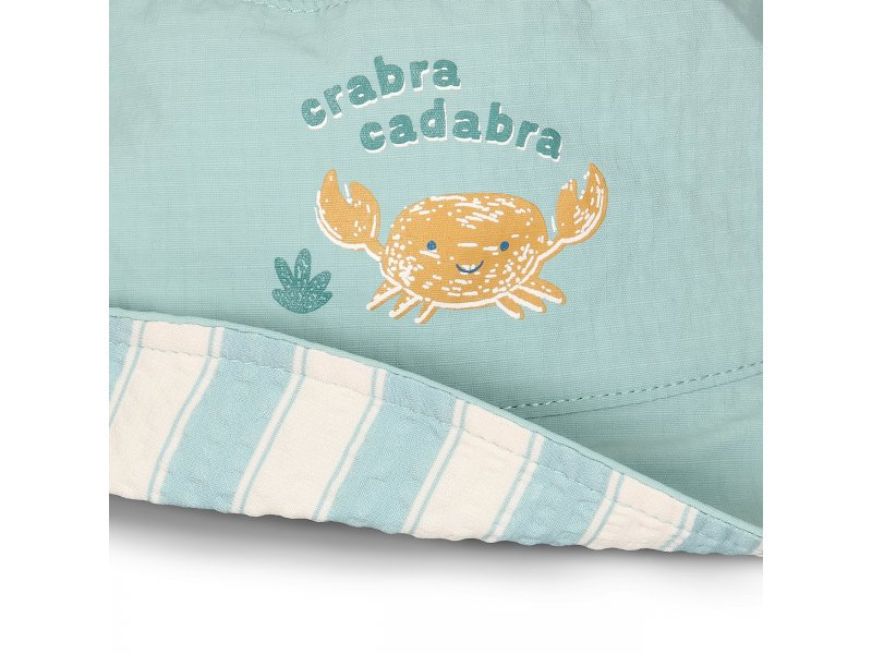 Oboustranný klobouček s krásným potiskem chrání vaše dítě před sluncem při koupání u moře i doma na zahradě. Ať už vaše děti milují skákání ve vlnách, koupání v bazénu nebo si rády staví hrady z písku, s touto čepičkou si mohou bezstarostně užívat celý den. Oboustranné provedení nabízí na výběr dva designy klouboučku - jednobarevný s potiskem a pruhovaný. Velikost 2 je určena pro děti cca od 1 roku do 2 let. Složení: 94% recyklovaný nylon, 6% spandex Při pobytu na slunci používejte pro dítě ochranné opalovací krémy. Možno prát v pračce na 30°C. Balení obsahuje 1 klobouček.