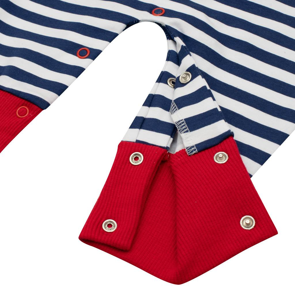 Letní bavlněný overálek české značky New Baby Marine pro miminka. Overálek je celopotištěný moderními pruhy s krásnou nášivkou lodičky. Nášivka je podlepená látkou proti poškrábání. Zapínání na ramínku a mezi nožičkama usnadňuje oblékání a přebalování miminka. Pro miminka je overal důležitým kouskem oblečení a při jakémkoliv pohybu jsou zádička miminka stále přikrytá. Složení: 100% bavlna.