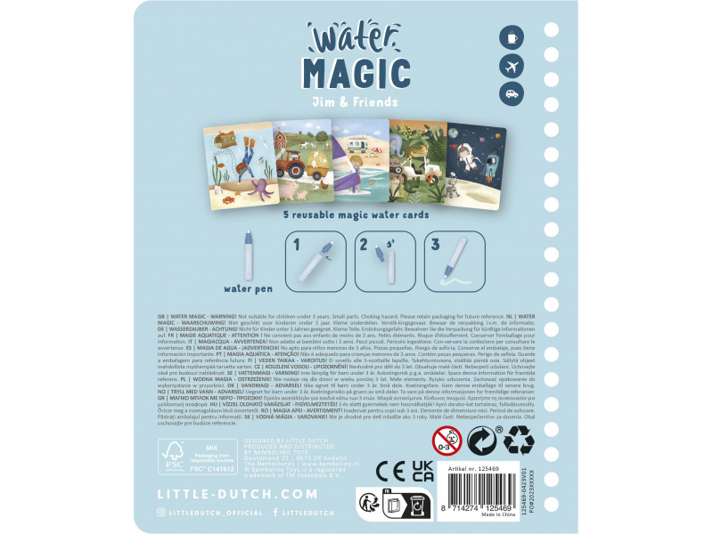 Kouzelná knížka skrývá na svých stránkách krásné ilustrace malého Jima, který objevuje svět pod hladinou i ve vesmíru. Ilustrace se odkrývají s pomocí vodního fixu, který je součástí knížky. Stačí fix naplnit vodou a malému umělci či umělkyni se během chvilky postupně vynoří Jim a jeho cestovatelská dobrodužství. Knížka s pěti ilustrovanými stránkami je opakovaně použitelná. Díky kroužkové vazbě z pevného kartonu drží otevřená pro pohodlné malování. Rozměry: 18 x 16 x 1,5 cm Vhodné pro děti od 3 let.
