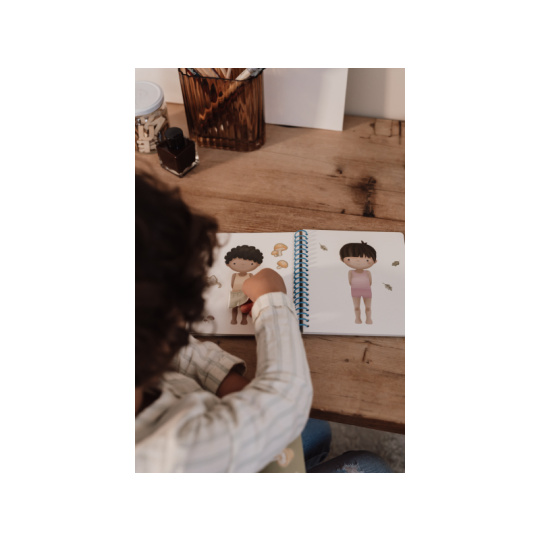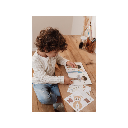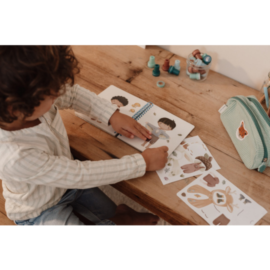 Oblíbená oblékací hra v krásném provedení se samolepkami zabaví vaše dítě doma i na cestách. Knížka obsahuje 24 stránek Jima a jeho kamarádů během jejich dobrodužství v lese a 12 archů s více než 150 samolepkami. Poskytne vašemu dítěti hodiny zábavy a pomáhá rozvíjet jeho kreativitu a představivost. Díky kroužkové vazbě knížka z pevného kartonu drží otevřená pro pohodlné kreslení. Knížka je součástí designové kolekce hraček a doplňků Little Dutch Forest Friends inspirované životem v lese. Rozměry: 18 x 16 x 1,5 cm Vhodné pro děti od 3 let.