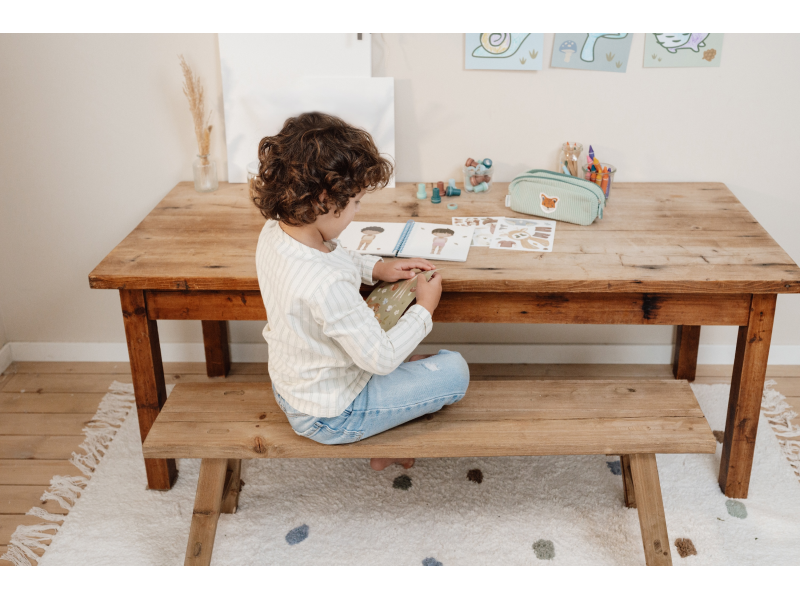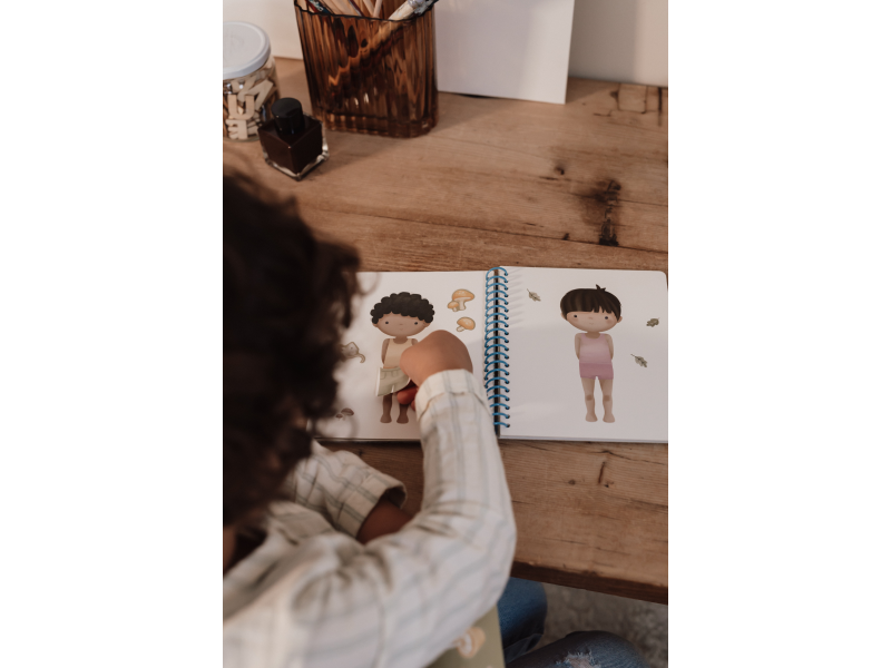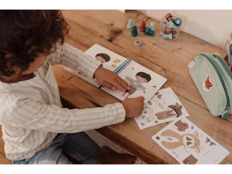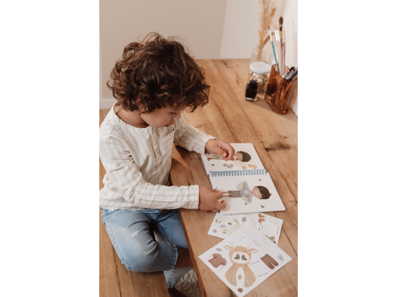 Oblíbená oblékací hra v krásném provedení se samolepkami zabaví vaše dítě doma i na cestách. Knížka obsahuje 24 stránek Jima a jeho kamarádů během jejich dobrodužství v lese a 12 archů s více než 150 samolepkami. Poskytne vašemu dítěti hodiny zábavy a pomáhá rozvíjet jeho kreativitu a představivost. Díky kroužkové vazbě knížka z pevného kartonu drží otevřená pro pohodlné kreslení. Knížka je součástí designové kolekce hraček a doplňků Little Dutch Forest Friends inspirované životem v lese. Rozměry: 18 x 16 x 1,5 cm Vhodné pro děti od 3 let.