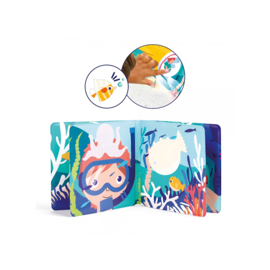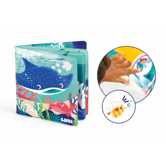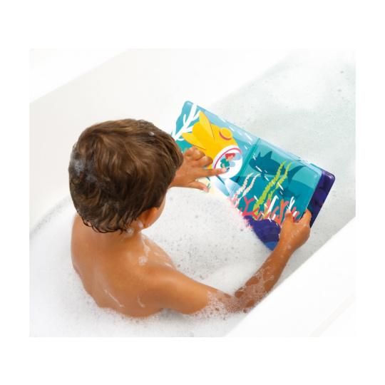 Kouzelná knížka do koupele s krásnými ilustracemi ze života pod mořskou hladinou má na každé stránce ukryté obrázky, které se objeví až po ponoření do vody. Po skončení koupele stačí nechat knihu uschnout a dvanáct kouzelných obrázků zase zmizí, aby se znovu objevily při dalším koupání. Rozměry: 18 x 18 x 2 cm Složení: 100% PEVA Vhodné pro děti od 10 měsíců.