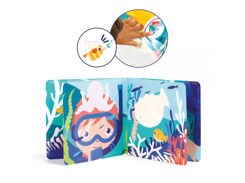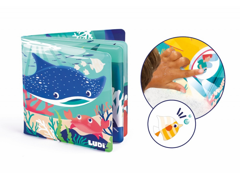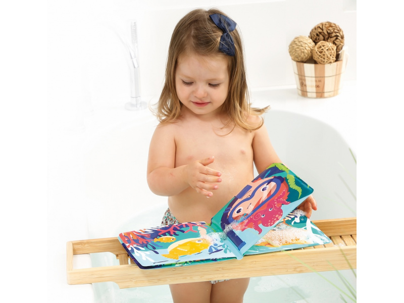 Kouzelná knížka do koupele s krásnými ilustracemi ze života pod mořskou hladinou má na každé stránce ukryté obrázky, které se objeví až po ponoření do vody. Po skončení koupele stačí nechat knihu uschnout a dvanáct kouzelných obrázků zase zmizí, aby se znovu objevily při dalším koupání. Rozměry: 18 x 18 x 2 cm Složení: 100% PEVA Vhodné pro děti od 10 měsíců.