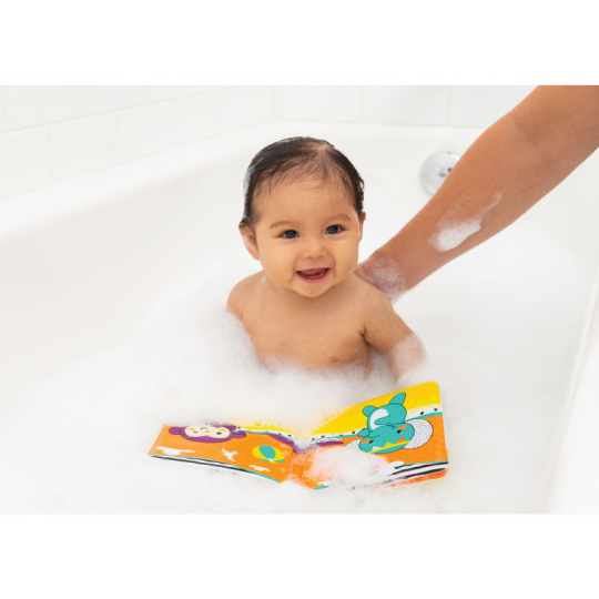 Omyvatelná knížka s krásnými ilustracemi zvířátek ve výrazných kontrastních barvách je vhodná pro použití ve vaně i jako první knížka pro společné prohlížení a vyprávění o zvířátkách. Vhodné pro děti od narození.