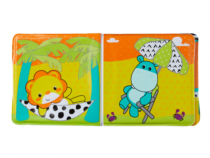 Omyvatelná knížka s krásnými ilustracemi zvířátek ve výrazných kontrastních barvách je vhodná pro použití ve vaně i jako první knížka pro společné prohlížení a vyprávění o zvířátkách. Vhodné pro děti od narození.