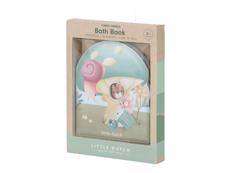 Omyvatelná knížka s krásnými ilustracemi ze života v lese je ideální pro prohlížení během koupele. Povídejte si se svým dítětem o jednotlivých zvířátkách, která v lese žijí, a užívejte si společné chvíle během koupání. Knížka plave na hladině a jedna její stránka po zmáčknutí píská. Knížka je součástí designové kolekce hraček a doplňků Little Dutch Forest Friends. Vhodné pro děti od 6 měsíců.
