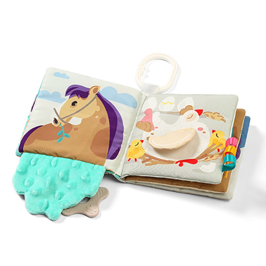 Knížka umožňuje získat nové dovednosti, od procvičování úchopu, přes stimulaci dásní pomocí kousátek s výstupky, až po naučení počítání a poznávání různých povrchů a tvarů. Má jasné, kontrastní barvy, které rozvíjejí zrak, představivost a schopnost soustředit se.
