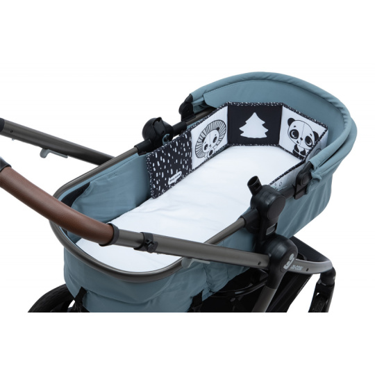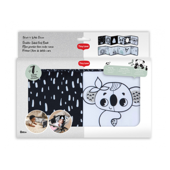 Oboustranná textilní knížka pro nejmenší Tiny Love je určena do kočárku, postýlky i na hrací deku. Kniha nabízí dvě strany pro dvě vývojová stádia dítěte: 0-3 měsíce: strana s bezpečným zrcátkem a vysoce kontrastními, jednoduchými černo-bílými obrázky, které podněcují rozvoj smyslů a emoční inteligence dítěte. Od 3 měsíců: strana s kontrastními obrázky v základních barvách a různorodými texturami ke zkoumání, které podporují rozvoj smyslů a jemné motoriky dítěte. Knížka drží postavená samostatně pro hru na bříšku nebo je možné ji umístiti do postýlky či kočárku. Vhodné pro děti od narození.