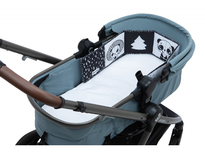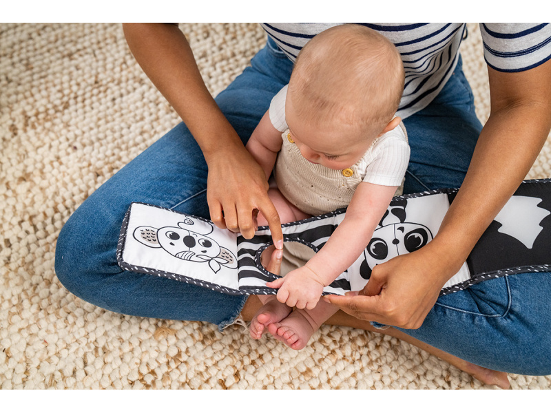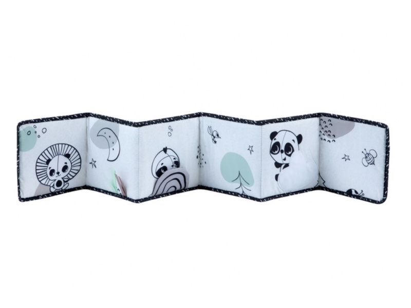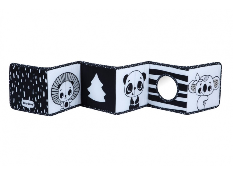 Oboustranná textilní knížka pro nejmenší Tiny Love je určena do kočárku, postýlky i na hrací deku. Kniha nabízí dvě strany pro dvě vývojová stádia dítěte: 0-3 měsíce: strana s bezpečným zrcátkem a vysoce kontrastními, jednoduchými černo-bílými obrázky, které podněcují rozvoj smyslů a emoční inteligence dítěte. Od 3 měsíců: strana s kontrastními obrázky v základních barvách a různorodými texturami ke zkoumání, které podporují rozvoj smyslů a jemné motoriky dítěte. Knížka drží postavená samostatně pro hru na bříšku nebo je možné ji umístiti do postýlky či kočárku. Vhodné pro děti od narození.