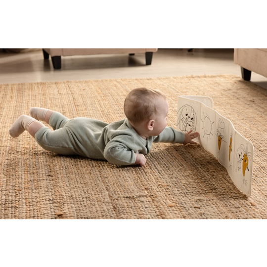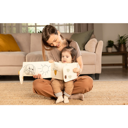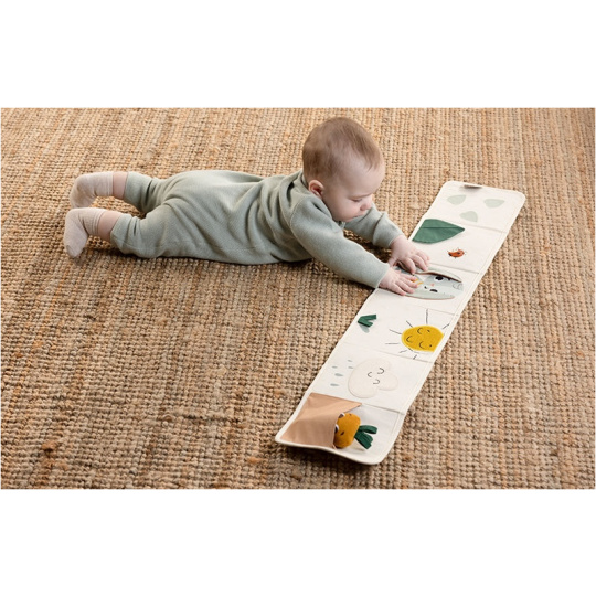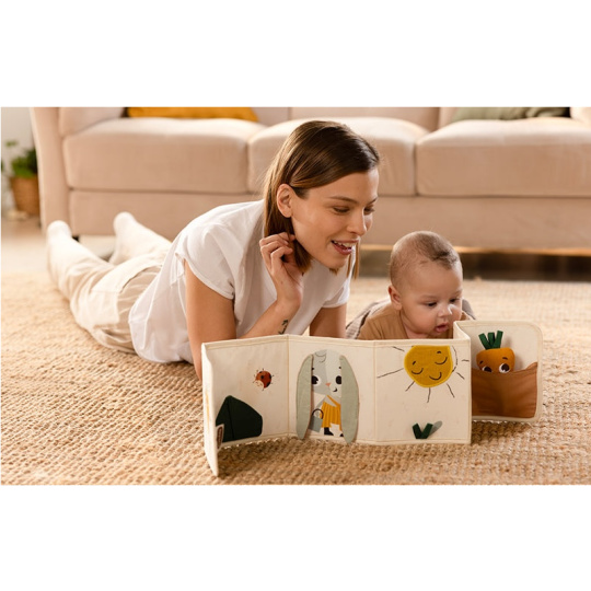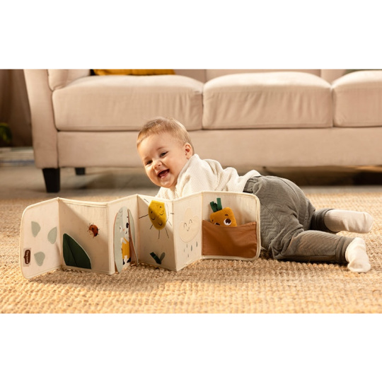 Oboustranná textilní knížka pro nejmenší Tiny Love navržená s láskou a péčí odborníky na vývoj dítěte je určena do kočárku, postýlky i na hrací deku. Kniha nabízí dvě strany pro dvě vývojová stádia dítěte: 0-3 měsíce: strana s vysoce kontrastními, jednoduchými obrázky v základních barvách, které podněcují rozvoj smyslů a emoční inteligence dítěte. Od 3 měsíců: strana s barevnými obrázky a různorodými texturami ke zkoumání, které podporují rozvoj smyslů a jemné motoriky dítěte. Kniha je součástí udržitelné kolekce Tiny Love Garden of Adventures, která byla vytvořena s láskou a péčí o naši planetu. Kolekce, inspirovaná výtvory přírody, je navržena tak, aby podporovala dítě ve vývoji a objevování světa kolem sebe. Vyrobeno z materiálů odpovědně získaných z odpovědných zdrojů, které splňují nejvyšší standardy udržitelnosti a jsou certifikovány dle standardu OEKO-TEX® STANDARD 100. Rozměry složené knížky: 15,5 x 17,3 x 3 cm Složení: bavlna, recyklovaný polyester Vhodné pro děti od narození.