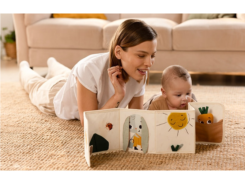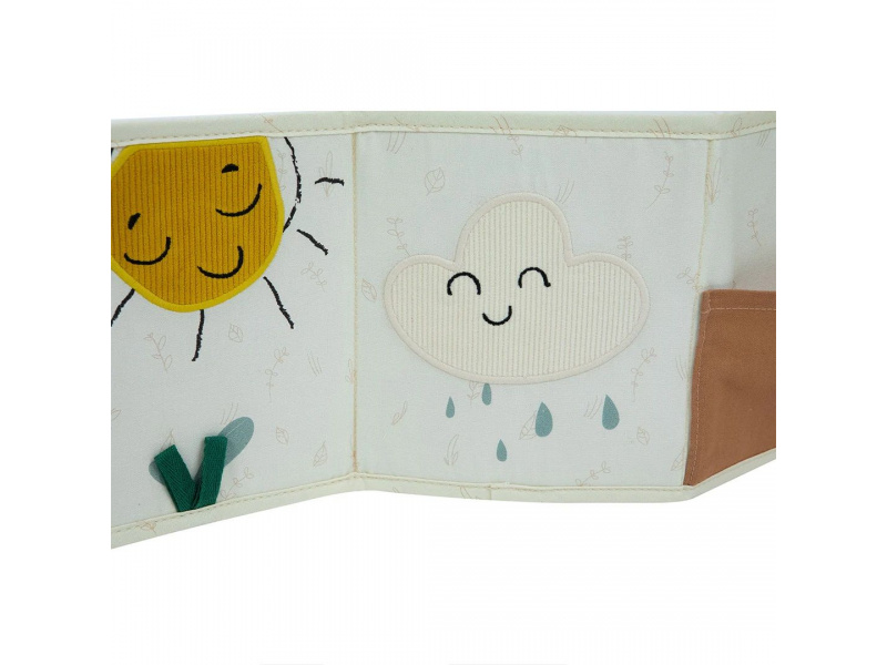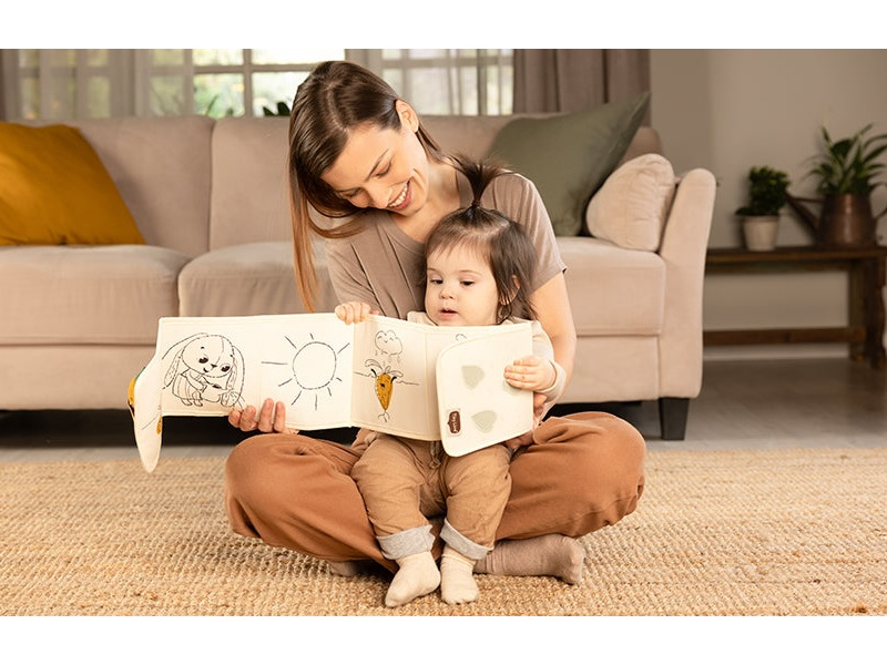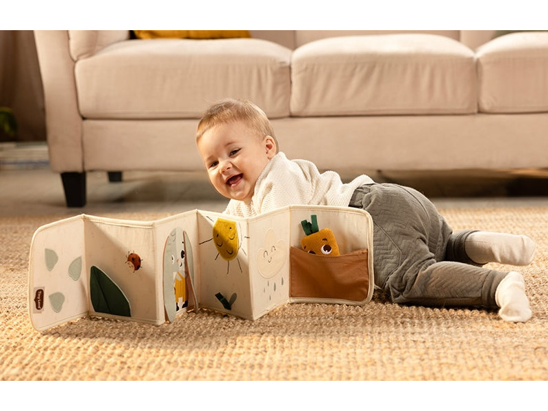 Oboustranná textilní knížka pro nejmenší Tiny Love navržená s láskou a péčí odborníky na vývoj dítěte je určena do kočárku, postýlky i na hrací deku. Kniha nabízí dvě strany pro dvě vývojová stádia dítěte: 0-3 měsíce: strana s vysoce kontrastními, jednoduchými obrázky v základních barvách, které podněcují rozvoj smyslů a emoční inteligence dítěte. Od 3 měsíců: strana s barevnými obrázky a různorodými texturami ke zkoumání, které podporují rozvoj smyslů a jemné motoriky dítěte. Kniha je součástí udržitelné kolekce Tiny Love Garden of Adventures, která byla vytvořena s láskou a péčí o naši planetu. Kolekce, inspirovaná výtvory přírody, je navržena tak, aby podporovala dítě ve vývoji a objevování světa kolem sebe. Vyrobeno z materiálů odpovědně získaných z odpovědných zdrojů, které splňují nejvyšší standardy udržitelnosti a jsou certifikovány dle standardu OEKO-TEX® STANDARD 100. Rozměry složené knížky: 15,5 x 17,3 x 3 cm Složení: bavlna, recyklovaný polyester Vhodné pro děti od narození.