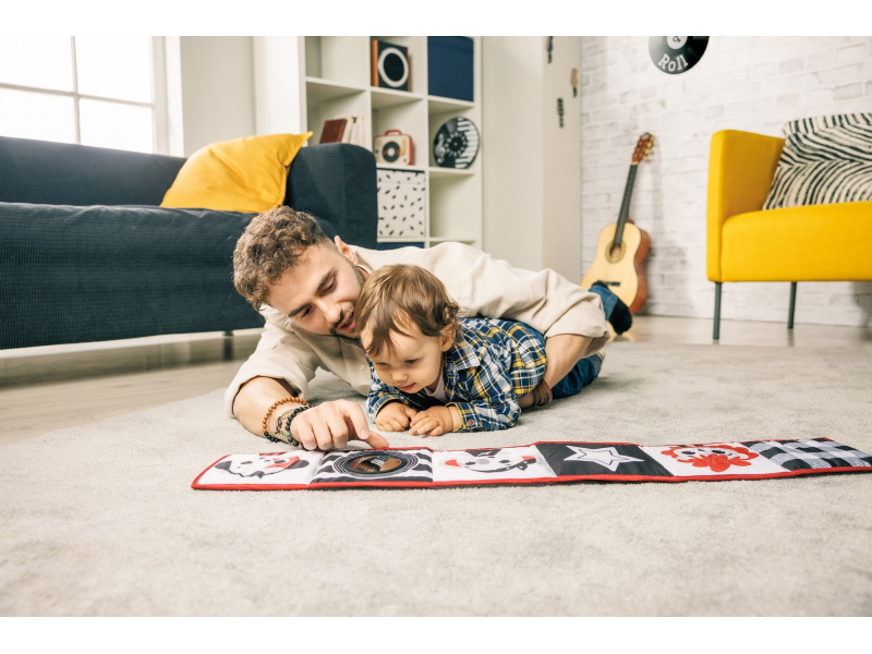 Oboustranná textilní knížka pro nejmenší Tiny Love je určena do kočárku, postýlky i na hrací deku. Kniha nabízí dvě strany pro dvě vývojová stádia dítěte: 0-3 měsíce: strana s bezpečným zrcátkem a vysoce kontrastními, jednoduchými obrázky v základních barvách, které podněcují rozvoj smyslů a emoční inteligence dítěte. Od 3 měsíců: strana s barevnými obrázky a různorodými texturami ke zkoumání, které podporují rozvoj smyslů a jemné motoriky dítěte. Vhodné pro děti od narození.