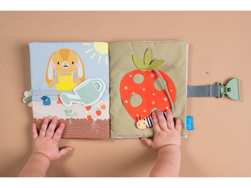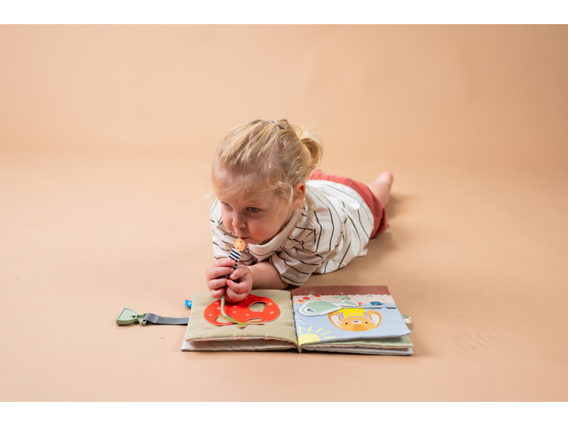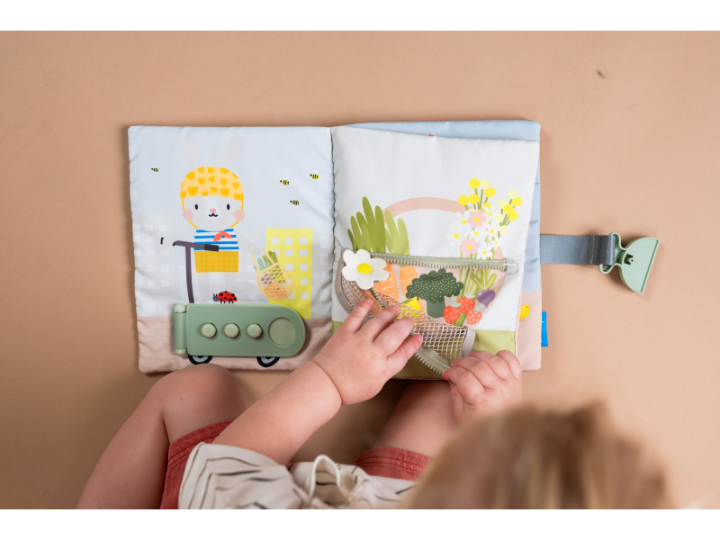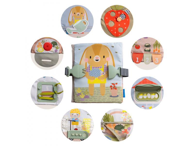 Jedinečná textilní knížka s krásnými ilustracemi nabízí dvanáct různých aktivit včetně zipů, přezek, tkaniček, knoflíků apod. Hraním s touto knížkou batole získává dovednosti, které mu např. usnadní samostatné oblékání a obouvání. Knížku využijete i pro učení dítěte barvám a prvním číslům. Knížka s aktivitami pomáhá vašemu dítěti rozvíjet jeho jemnou motoriku, koordinaci ruka - oko, obratnost a učí jej řešení problémů. Vhodné pro děti od 18 měsíců.