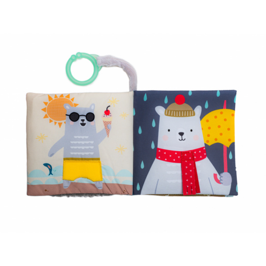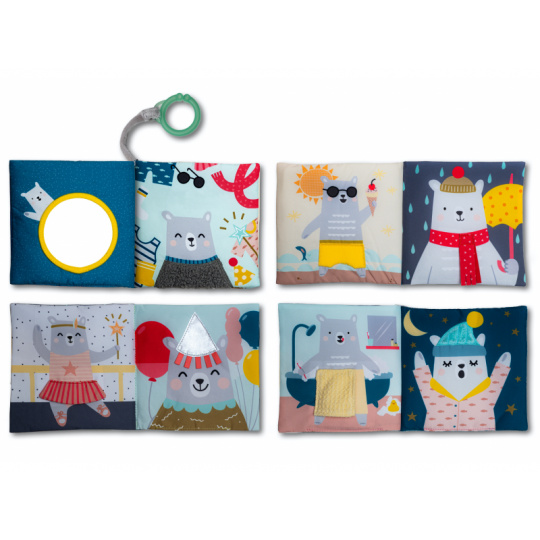 Textilní knížka s krásnými obrázky medvídka Paula ve vysoce kontrastních barvách pomáhá rozvíjet zrak i ostatní smysly a jemnou motoriku dítěte. Jednotlivé stránky po zmáčknutí jemně šustí a nabízí dítěti různorodé aktivity a textury pro zkoumání. Medvídek má na každé stránce jiné oblečení podle počasí a prostředí, ve kterém se právě nachází. Obrázky vám usnadní vymýšlení příběhů pro vaše dítě a podporují tak vaši komunikaci s dítětem, důležitou pro jeho další vývoj a rozvoj emoční inteligence. Knížku je možné s pomocí plastového kroužku zavěsit např. na autosedačku nebo kočárek. Rozměry: 15 x 15 cm Vhodné od 6 měsíců.