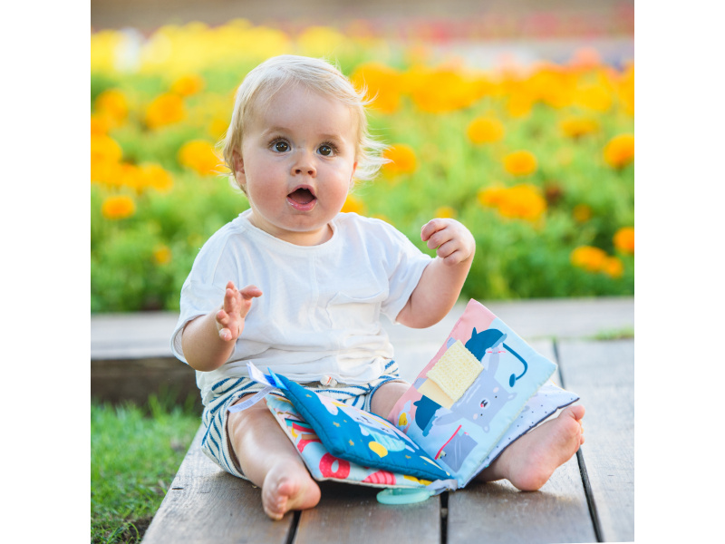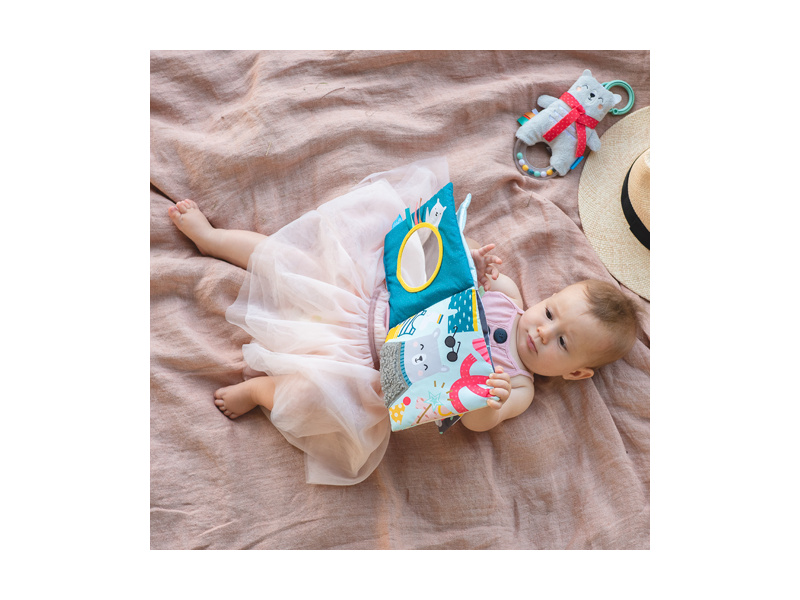 Textilní knížka s krásnými obrázky medvídka Paula ve vysoce kontrastních barvách pomáhá rozvíjet zrak i ostatní smysly a jemnou motoriku dítěte. Jednotlivé stránky po zmáčknutí jemně šustí a nabízí dítěti různorodé aktivity a textury pro zkoumání. Medvídek má na každé stránce jiné oblečení podle počasí a prostředí, ve kterém se právě nachází. Obrázky vám usnadní vymýšlení příběhů pro vaše dítě a podporují tak vaši komunikaci s dítětem, důležitou pro jeho další vývoj a rozvoj emoční inteligence. Knížku je možné s pomocí plastového kroužku zavěsit např. na autosedačku nebo kočárek. Rozměry: 15 x 15 cm Vhodné od 6 měsíců.
